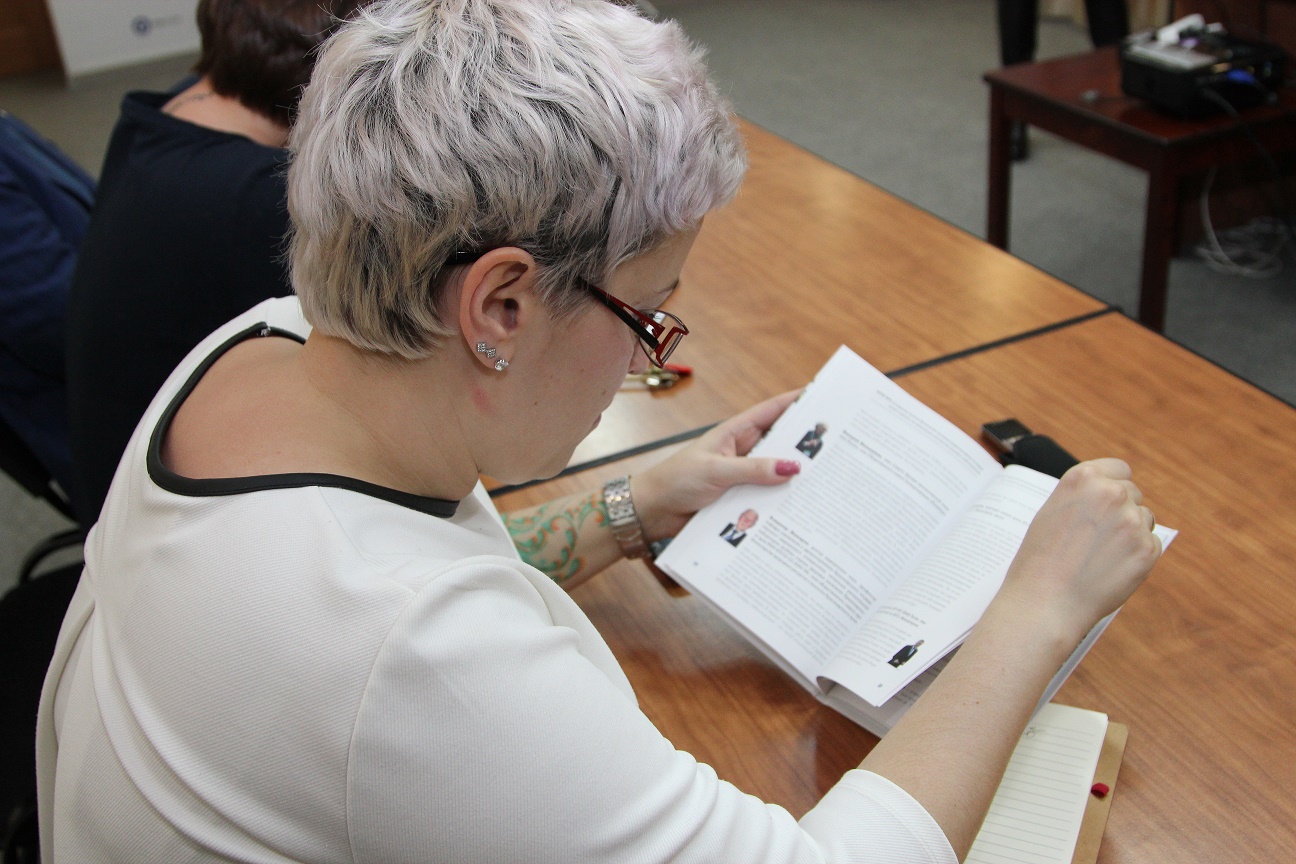 О том, как создавалась книга, о замысле и ее структуре рассказала на пресс-семинарах руководитель творческого коллектива, начальник отдела по связям с общественностью и СМИ Яна Маркина.