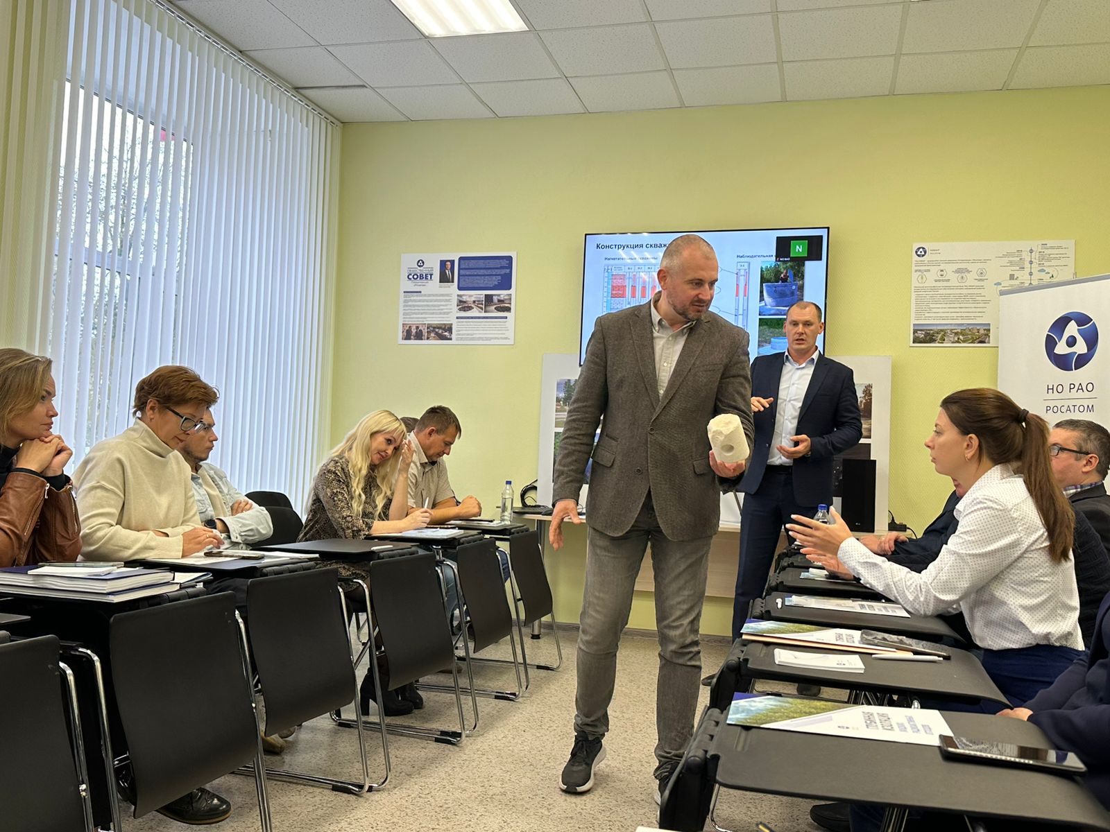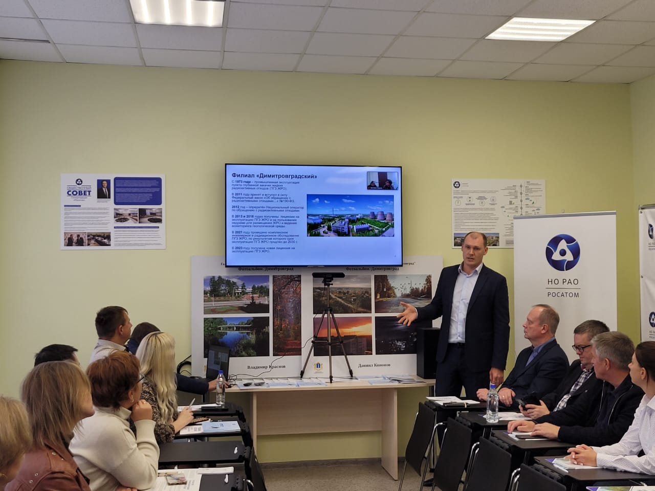 С докладом об эксплуатации пункта глубинной изоляции ЖРО выступил первый заместитель директора – главный инженер филиала «Димитровградский» ФГУП «НО РАО» Николай Храмков. Он подробно рассказал о комплексе наблюдений за состоянием недр и других компонентов окружающей среды. «Мы на протяжении 57 лет осуществляем мониторинг за состоянием недр и окружающей среды. За это время не было обнаружено никакого негативного воздействия. Также не было получено данных, которые изменили бы наше представление о геологической среде, в которую размещаются жидкие РАО. На основании проводимых исследований с уверенностью можно сказать, что радиоактивные отходы сегодня локализованы в пределах горного отвода и в пределах пластов-коллекторов, которые выделены для размещения ЖРО», - подчеркнул он.