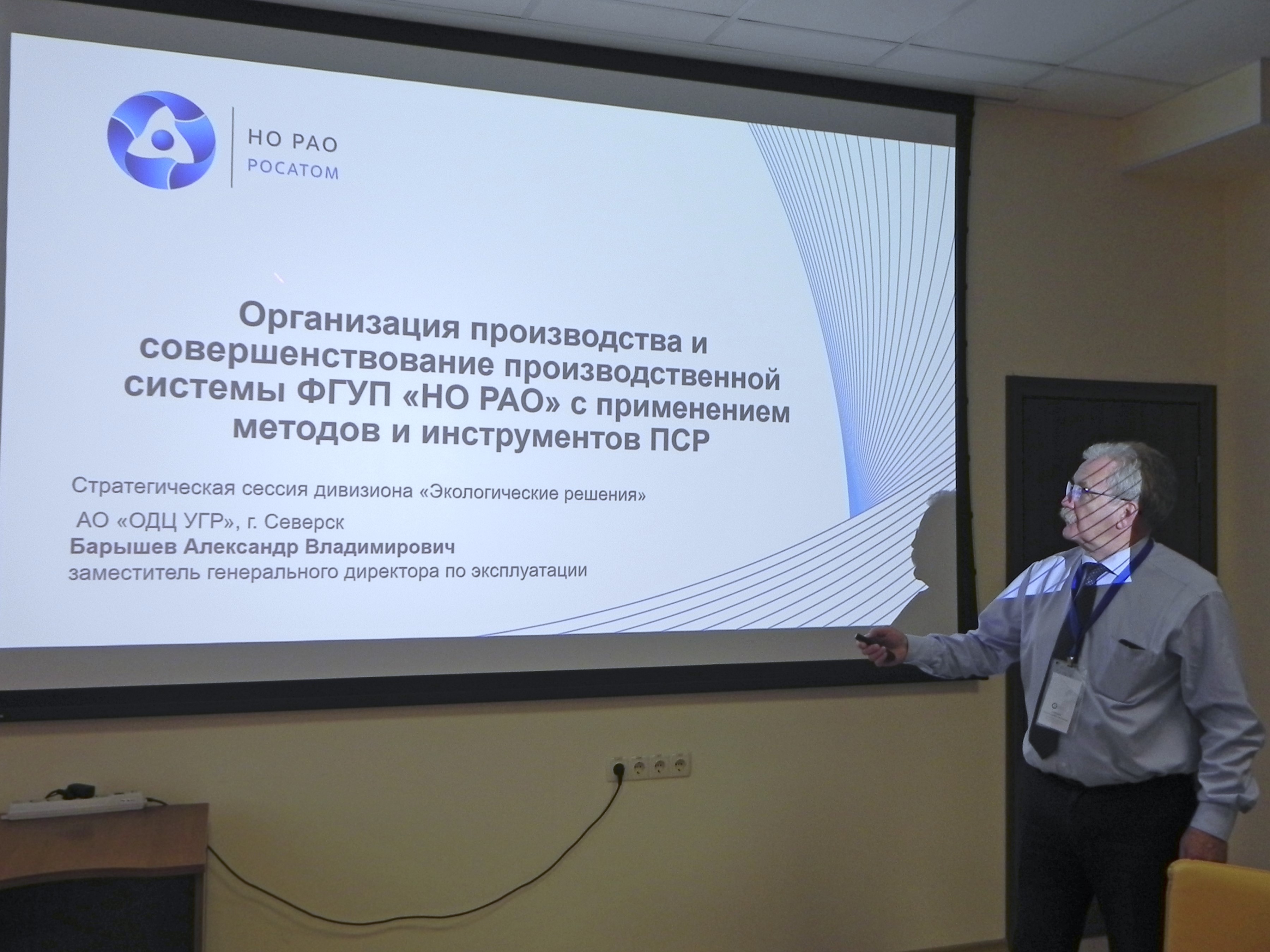 Доклад «Организация производства и совершенствование производственной системы ФГУП «НО РАО» с применением методов и инструментов ПСР» представил заместитель генерального директора по эксплуатации (директор по производству) НО РАО Александр Барышев.