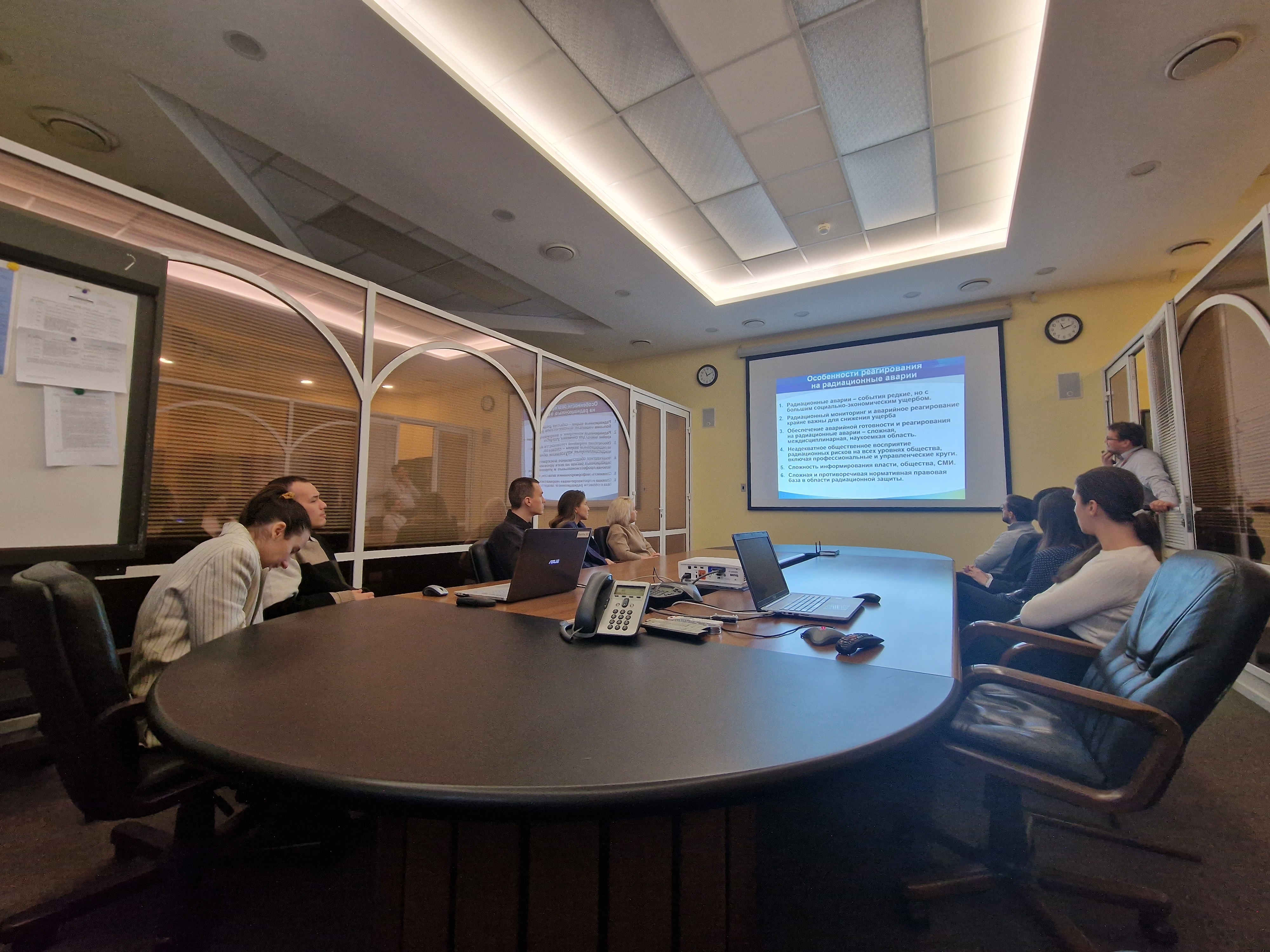 Молодым специалистам НО РАО не только рассказали о научно-технической поддержке аварийной готовности и реагирования на радиационные аварии, но и продемонстрировали работу систем мониторинга в режиме реального времени. Участники тура от департамента сотрудничества с международными и научными организациями НО РАО также выступили в качестве спикеров, рассказав молодым ученым ИБРАЭ РАН о деятельности Национального оператора.
